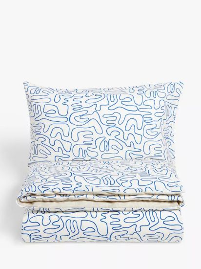 The 100% cotton construction of this scribble design reversible bedding allows you to experience all the breathable benefits of a material renowned for its temperature-regulating qualities, so you can sleep soundly night after night.