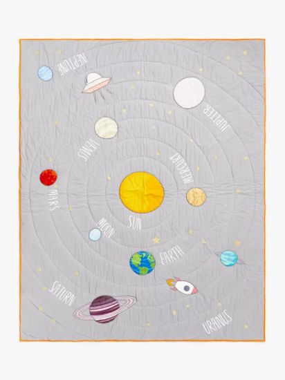 This cosy quilt is made from pure cotton and is the perfect layer for their bed on chilly nights. With a labelled solar system on one side, they can learn the differences between each planet. The contrasting plain reverse and vibrant trim provides two different design styles for their bedroom.
